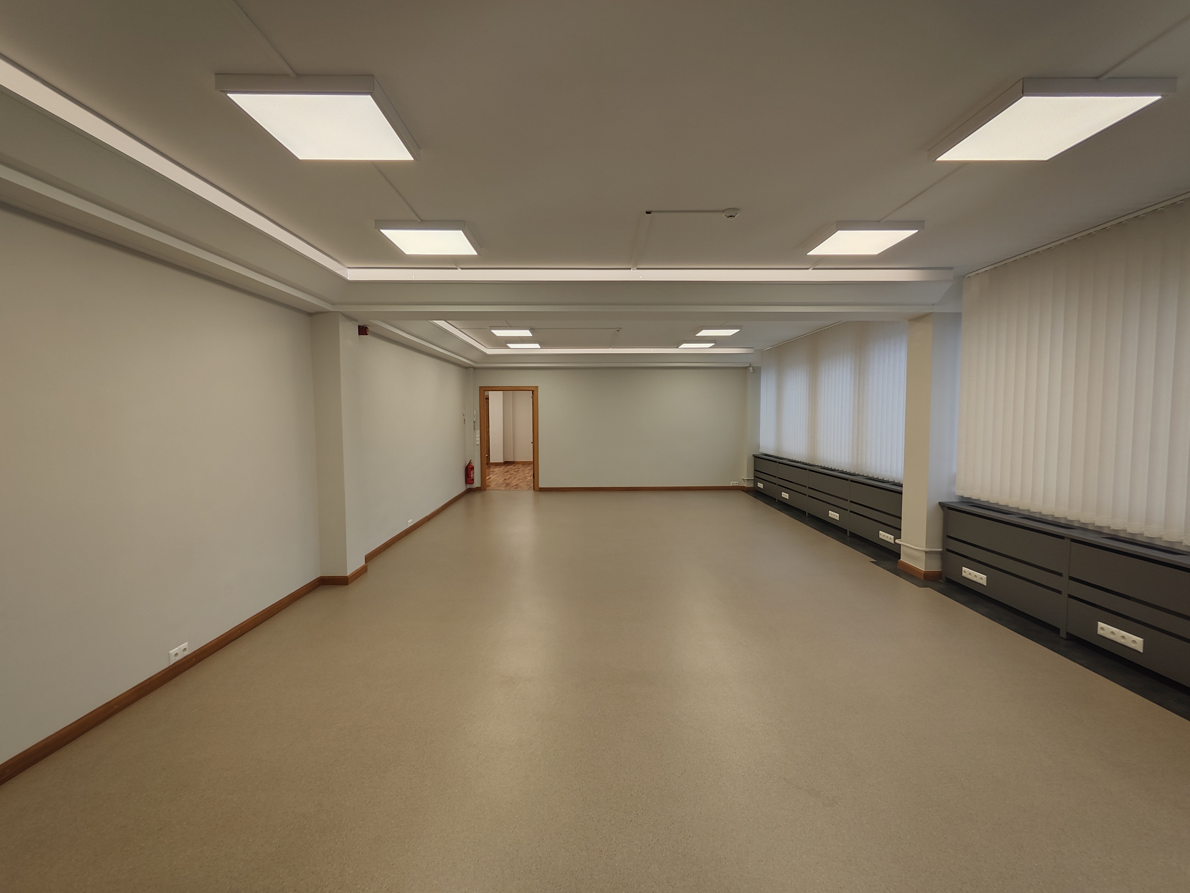 Ir veikts telpu kosmētiskais remonts. Uzstādītas jaunas vertikālās žalūzijas, nomainīts grīdas segums.