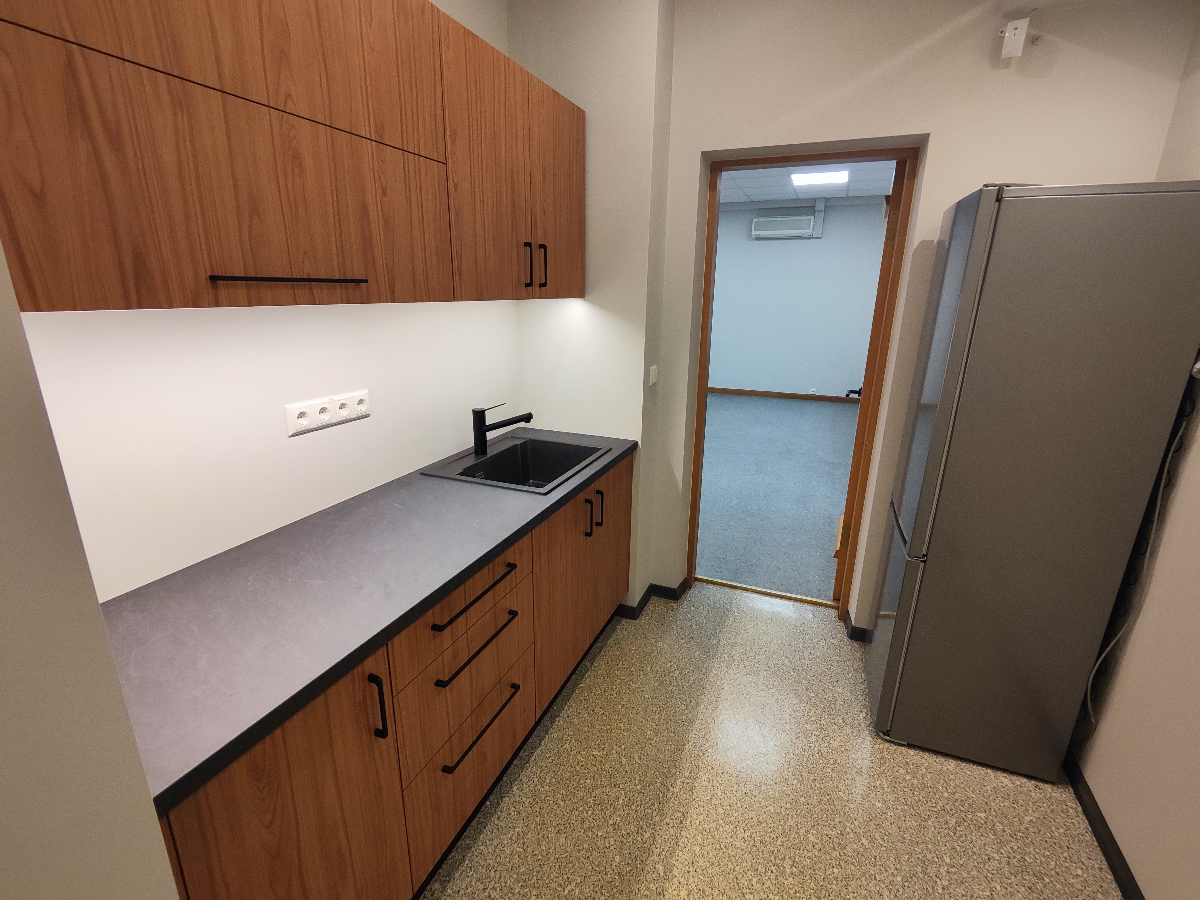 Biroja telpās ir atsevišķa virtuves zona, kā arī WC telpas.