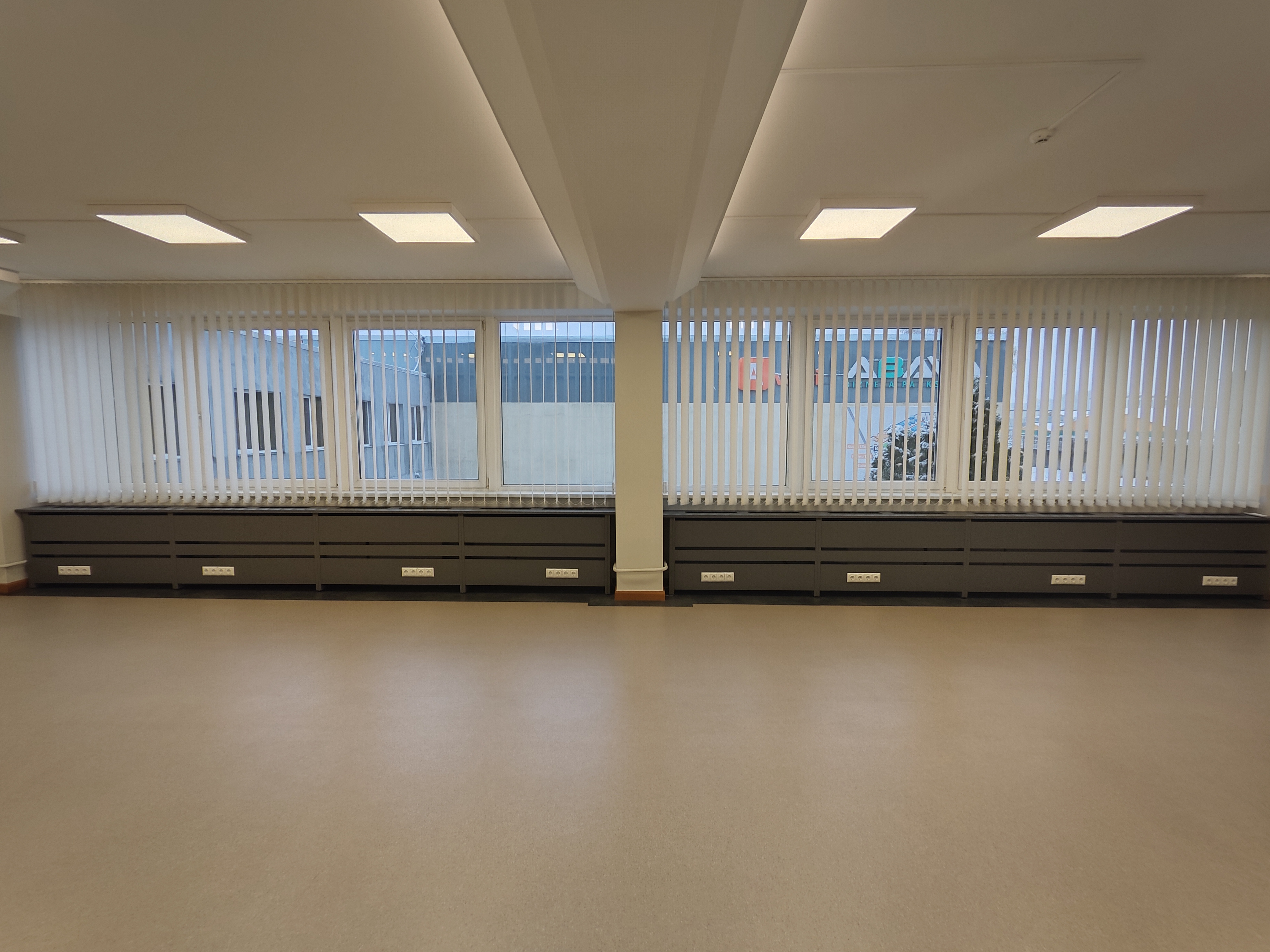Ir veikts telpu kosmētiskais remonts. Uzstādītas jaunas vertikālās žalūzijas, nomainīts grīdas segums.